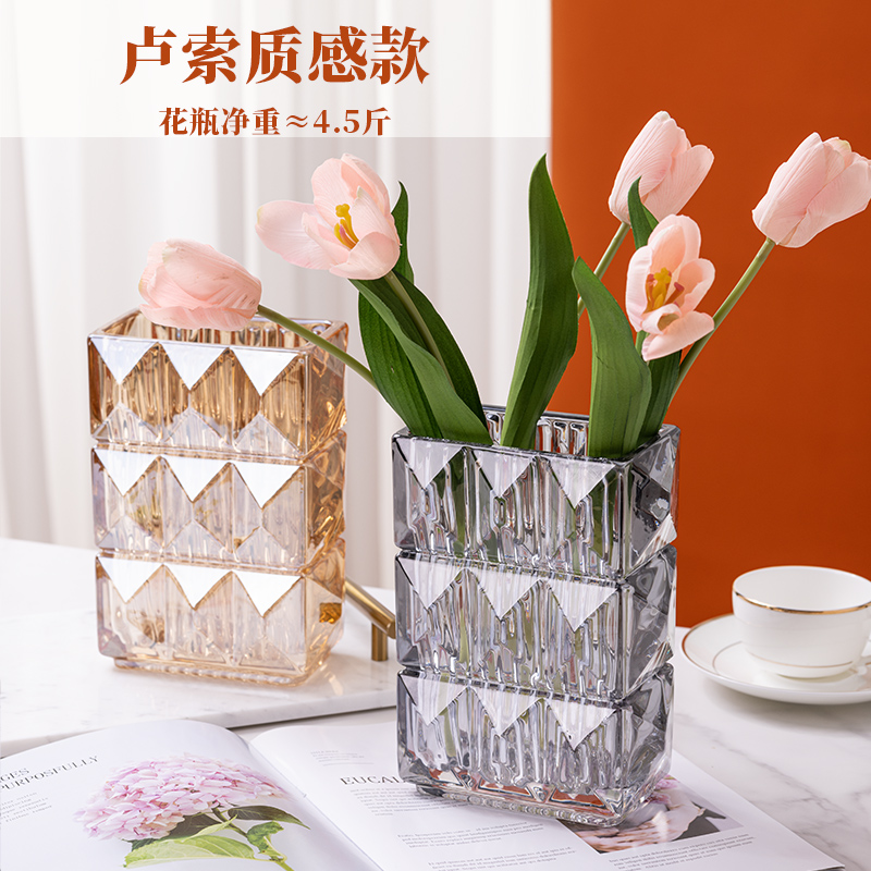 家居饰品^花瓶^^^山西 运城^高级感玻璃花瓶摆件客厅插花玫瑰百合鲜花大号透明装饰简约轻奢