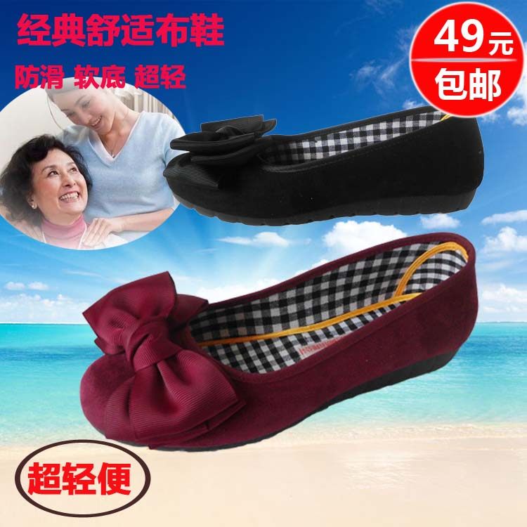 老北京平底布鞋女单黑色通勤工作鞋蝴蝶结舒适厚底软底工装上班鞋热门设计联盟服务商