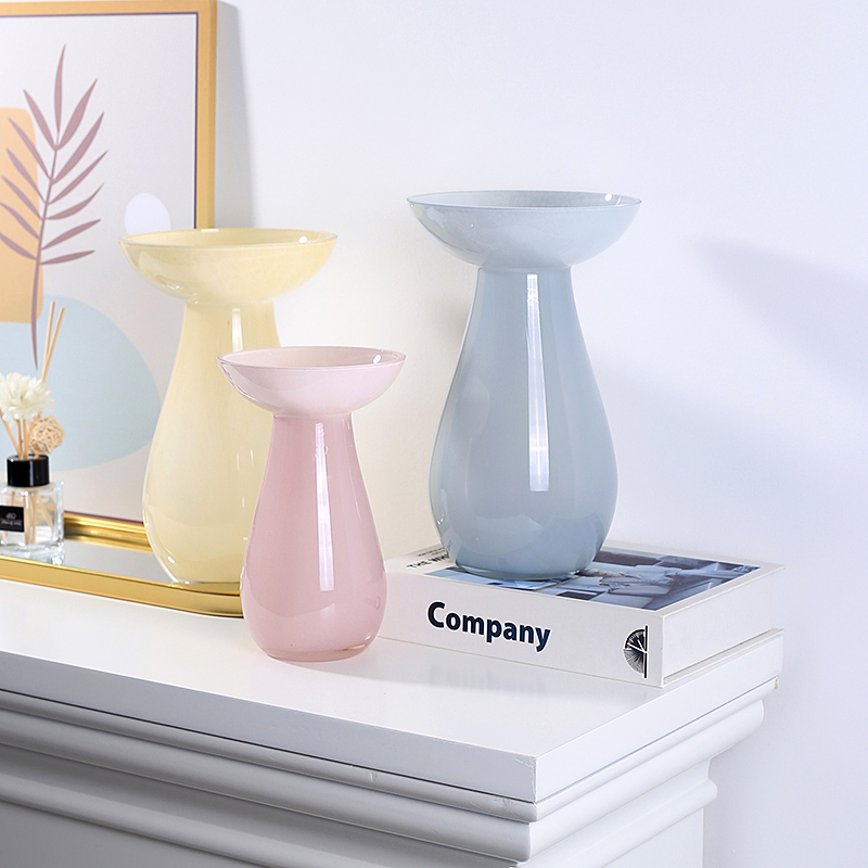 ins小清新玻璃花瓶客厅样板间简约装饰插花摆件琉璃创意蘑菇花器