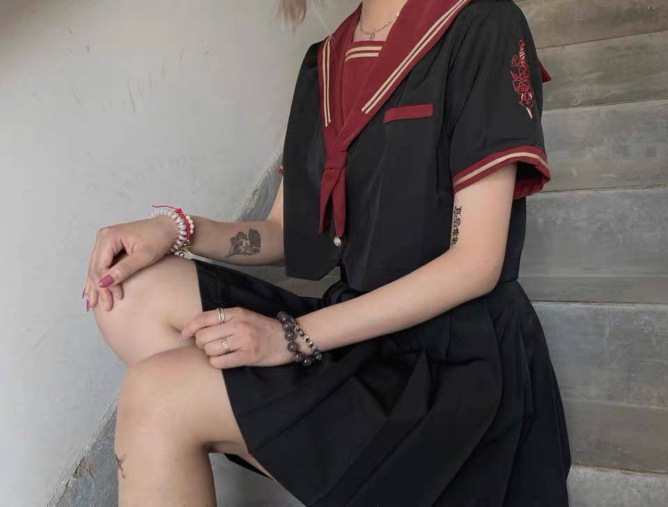 售罄展示欲妄原创设计黑身jk水手服不良夏服JK制服西式黑红金二本热门设计联盟服务商