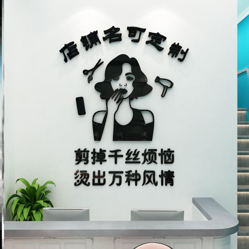 理发店墙面装饰背景墙贴画壁纸玻璃门创意自粘美发廊潮装修3d立体热门设计联盟服务商