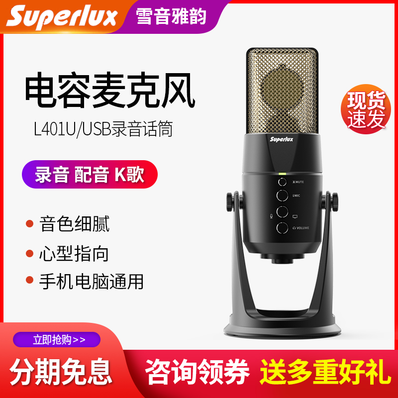 Superlux舒伯乐 L401U电容话筒USB麦克风K歌录音配音直播手机通用热门设计联盟服务商