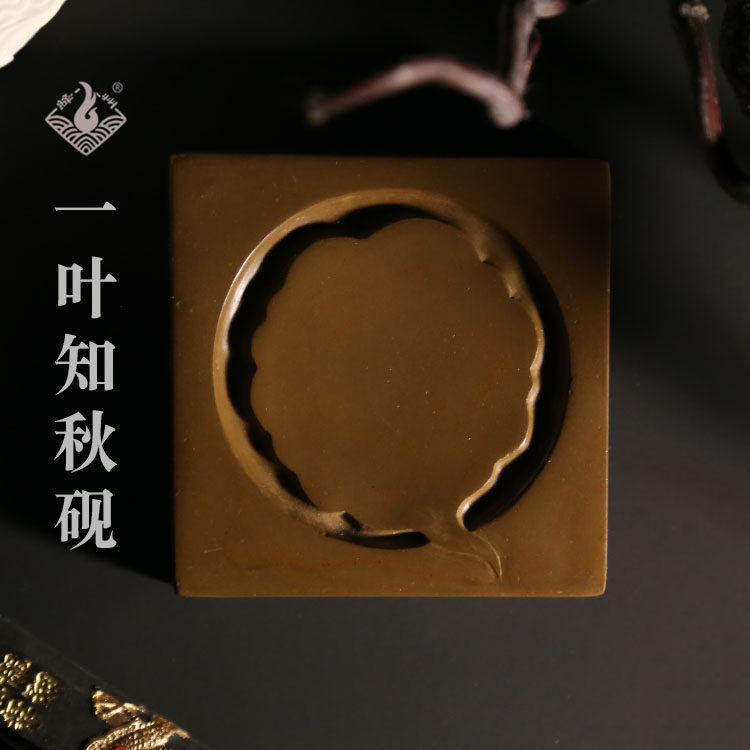 一叶知秋砚绛州澄泥砚真品包邮非物质文化遗产把玩件手工烧制礼盒热门设计联盟服务商