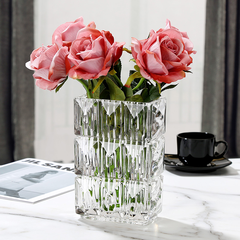 网红轻奢北欧加厚璀璨玻璃花瓶透明插花欧式简约客厅家居软装摆件