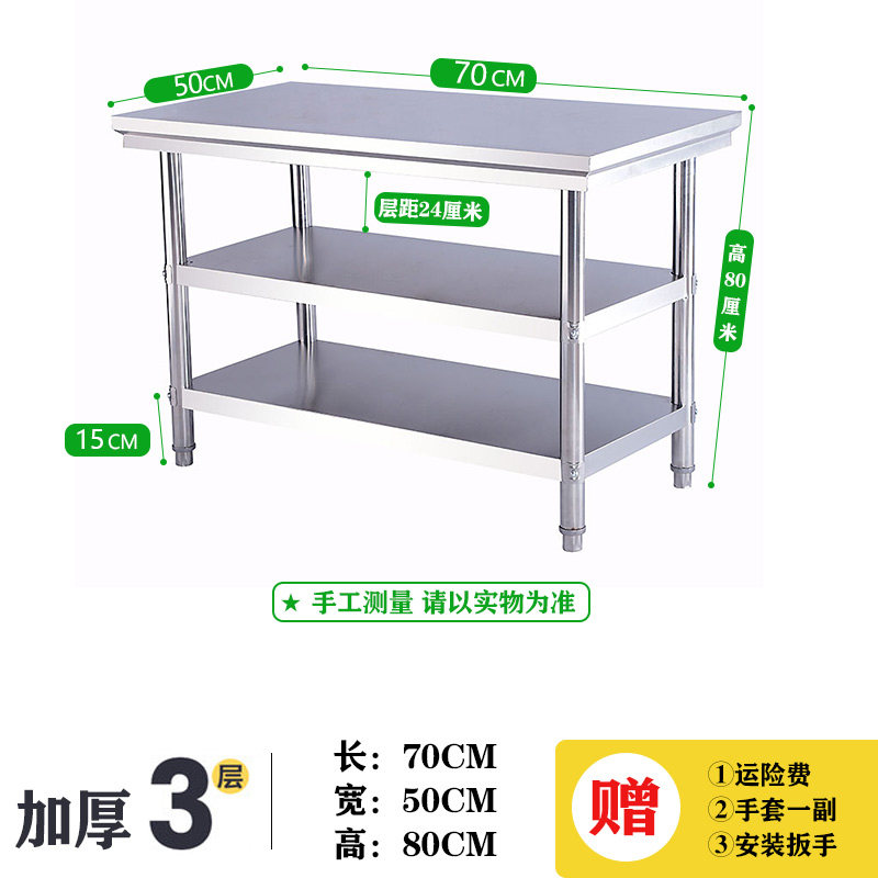加厚三层不锈钢工作台厨房切菜剁肉桌子网店打包酒店后厨操作台热门设计联盟服务商