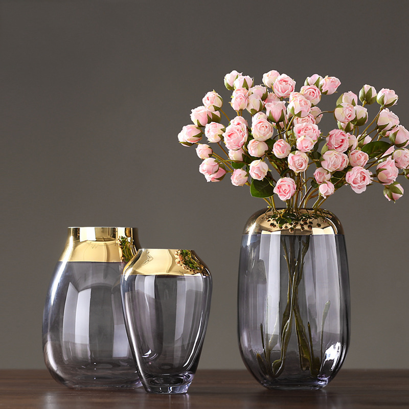 美式轻奢琉光水晶玻璃花瓶客厅样板间摆件酒店插花装饰花瓶