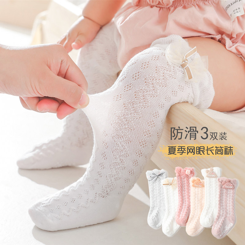 婴儿过膝长筒袜春夏季网眼薄款纯棉宝宝防滑高筒袜男女童卡通腿袜热门设计联盟服务商