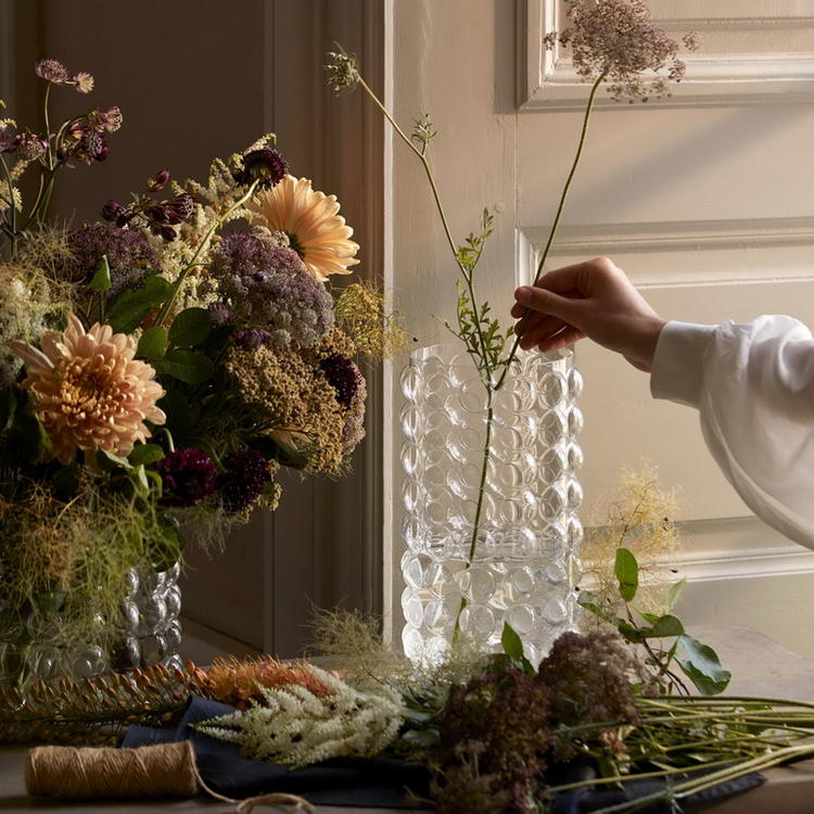 HM Home家居北欧ins风特大号玻璃泡泡浮雕造型直筒花瓶富贵竹插花热门设计联盟服务商